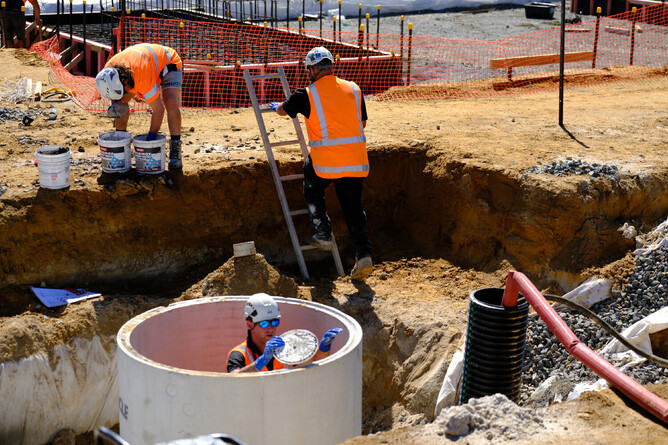 With around 1.3km in length of stormwater pipes up to 500mm in diameter, as well as large underground soakage pits and manholes, our team's charging ahead on the ambitious programme for our client, which is due at the end of April.