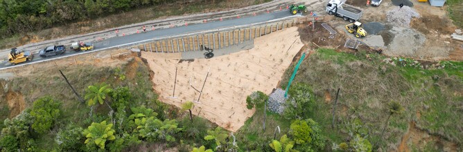 In July 2025, Nicholls and Uttinger Civil completed the repair of 2 slip sites on Ohautira Road, near Raglan. Works included cut to waste of approx. 1,500m3 of material and import of 1,800m3 of GAP65 structural fill to build up a rock buttress to support the road. We al...