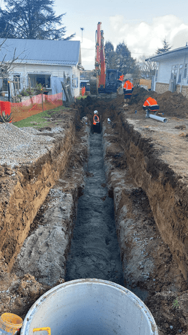 We established three waters infrastructure for new residential lots, including connecting the lots onto a live wastewater line, and stormwater detention tanks into the council line, plus a water rider main.