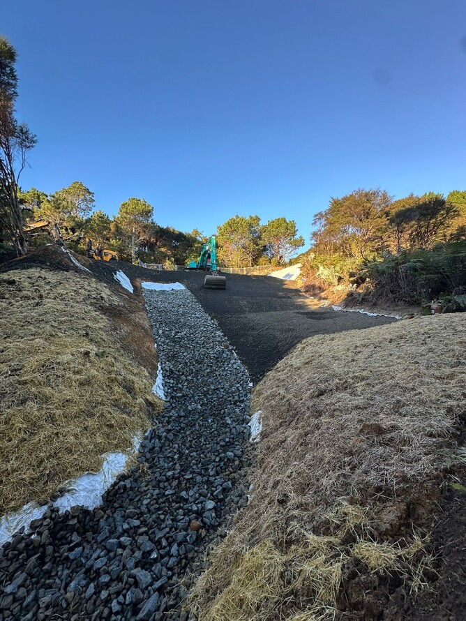 In July 2025, Nicholls and Uttinger Civil completed the repair of 2 slip sites on Ohautira Road, near Raglan.